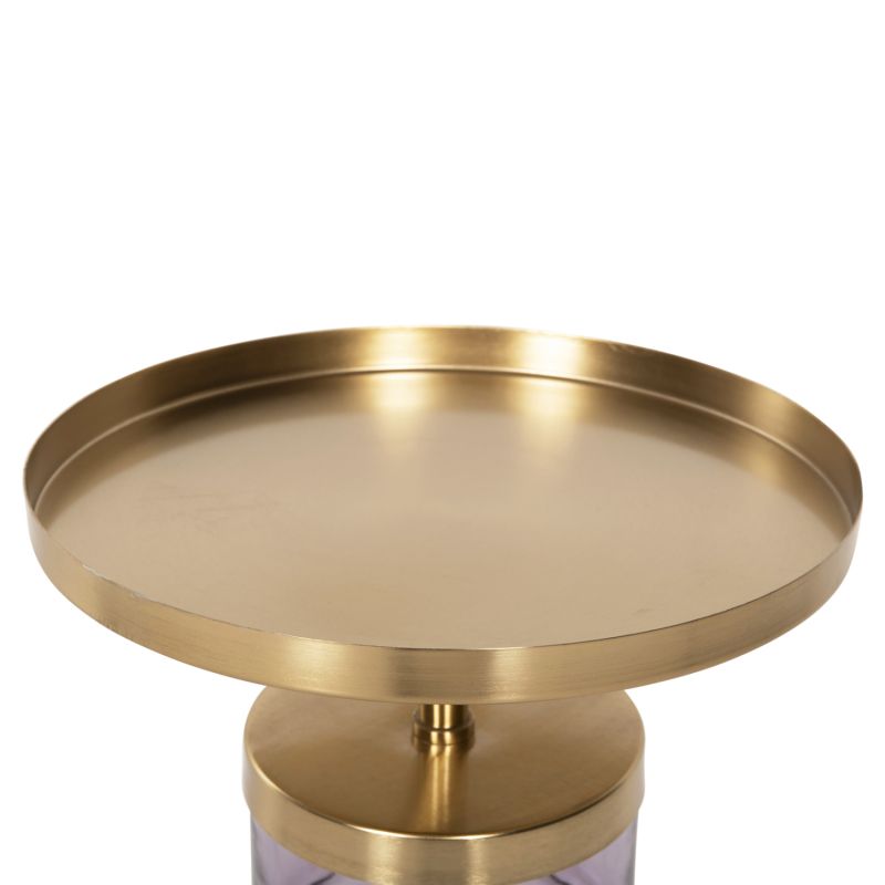 SIDE TABLE HAILEY HM9729 PURPLE GLASS-METAL IN GOLD Φ39,5x45Hcm.