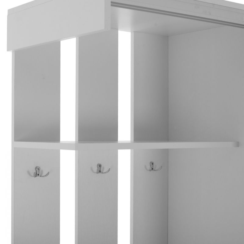 Στην αριστερή πλευρά διαθέτει ράφι αποθήκευσης στο πάνω μέρος, χώρο για κρεμάστρες και 4 ράφια για αποθήκευση μικροαντικειμένων στο κάτω μέρος.