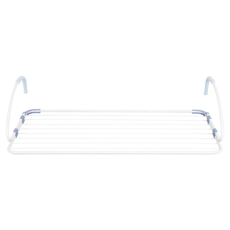 HM12166 is a large white aluminum drying rack, practical and light, which will make drying your laundry easy. This is a hanging rack for balconies with hanging arms that have plastic covers in every contact corner.