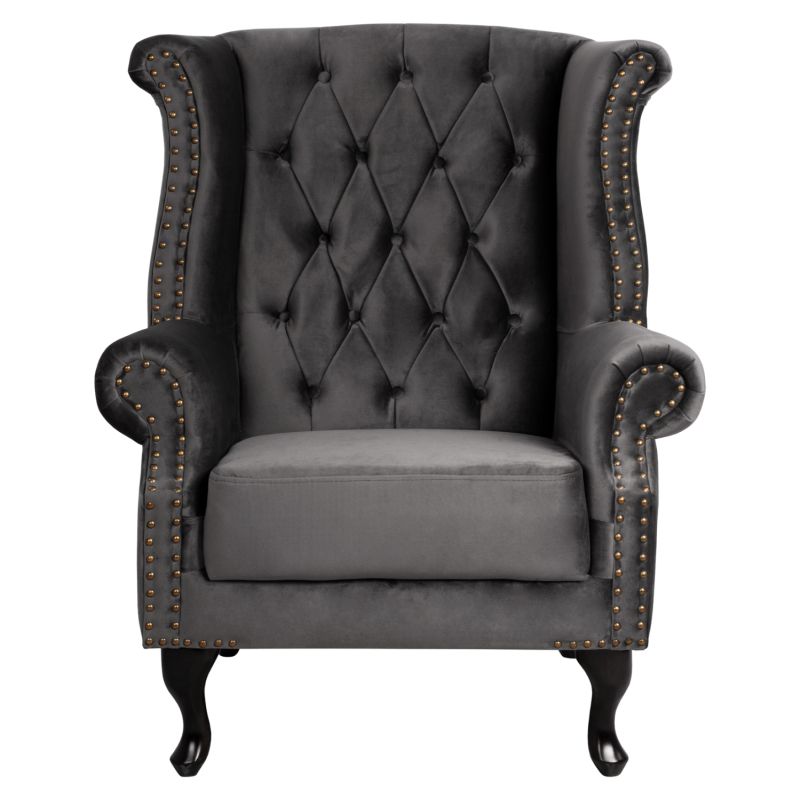 Armchair Grey Velvet,Chesterfield-style, Polina, 83x75x107 HM0053.10
