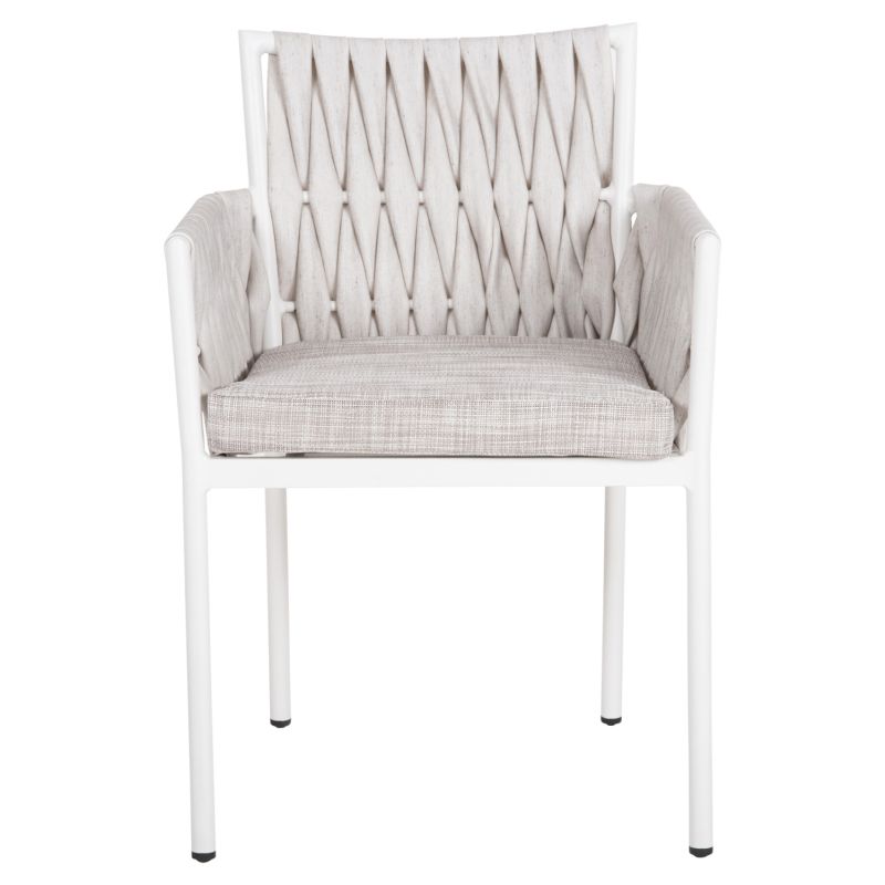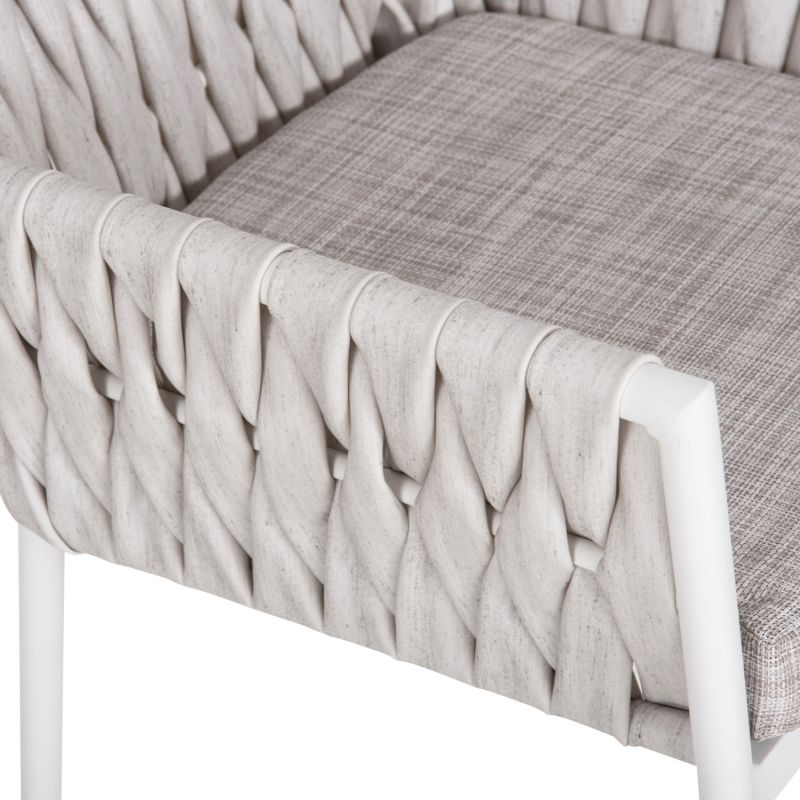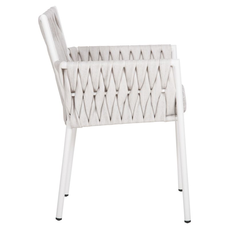 The MARTIN outdoor armchair in WHITE color is modern, comfortable, and stable! The back and arms are upholstered with wide synthetic Rattan in OFF-WHITE color while the textilene cover on the seat cushion is also in OFF-WHITE color. This armchair will aesthetically upgrade your space and will catch the eye thanks to its construction materials. Also, the fact that it is STACKABLE makes it particularly practical since you can store it in the smallest possible space.