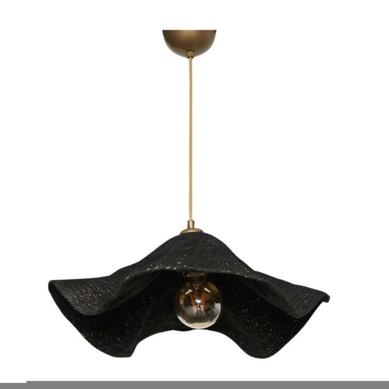 Hm7649.02- Ceiling pendant----If you want to decorate your space with a lamp in boho style, this is the right choice. It is a one-light luminaire with a BLACK wavy and non-transparent “cap”, knitted with natural cotton rope, of high quality and durability. The height of the luminaire is adjusted depending on the installation, so that you can configure it to the height that satisfies you.