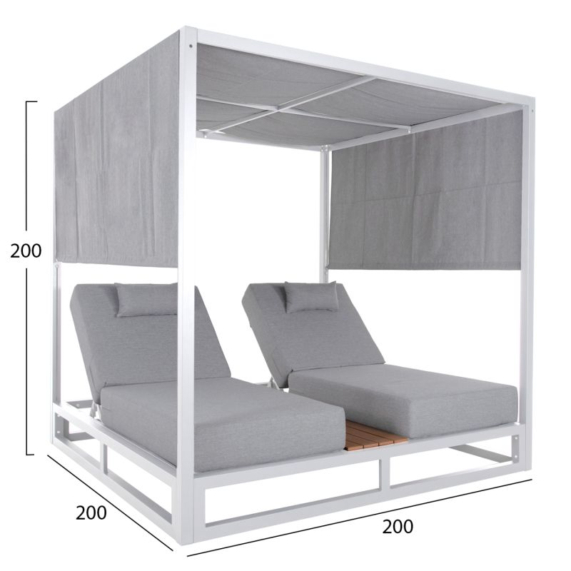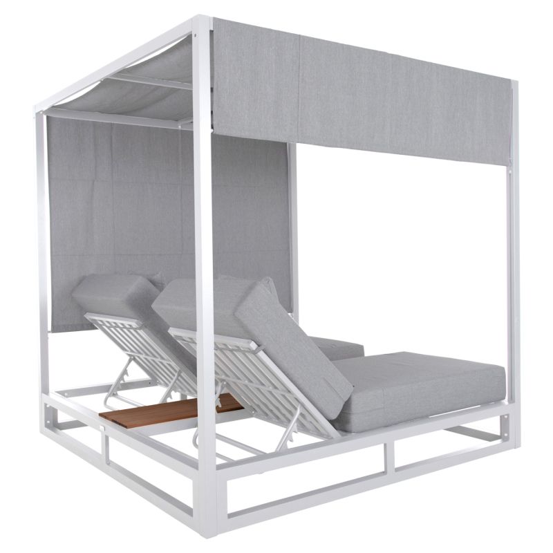DOUBLE LOUNGE SUNBEDS IN A CUBE WITH SUNSHADES GALLANT HM6097.02 ALUMINUM IN WHITE 2x2x2m