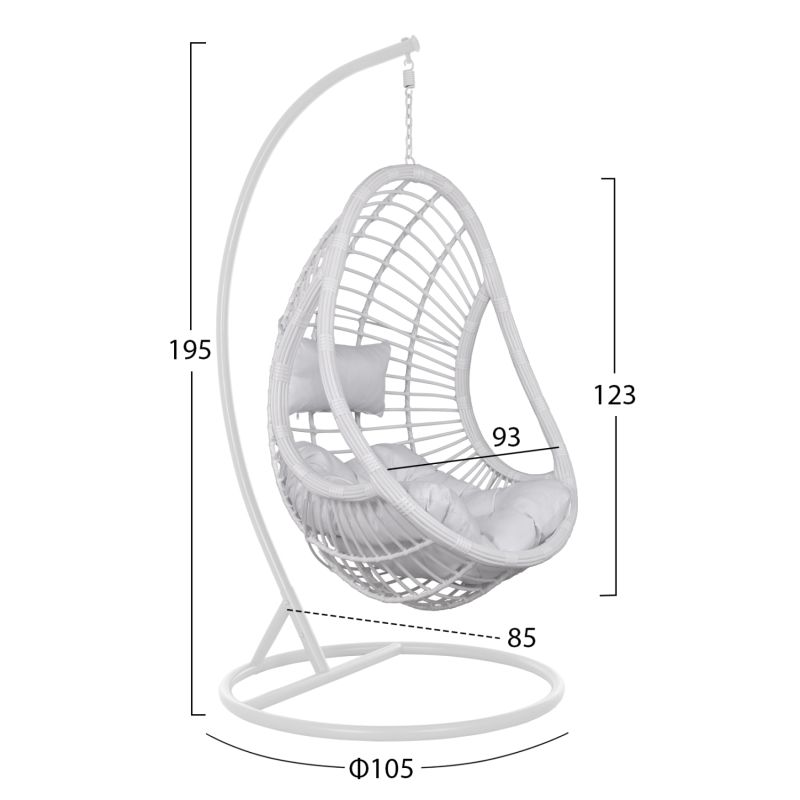Hanging Armchair Nest HM5541.03 with white wicker & pillows Diameter 105x195cm