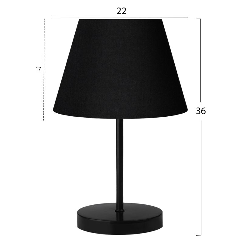 This is a clean-cut decorative table lamp. The "cap" of the luminaire has the shape of an open bell (trapezoidal) in black color, while the support base is black and circular. A simple and elegant table lamp that diffuses the light sweetly and creates the atmosphere you have always imagined for your space, so that you can create your own corner of relaxation or even decoration. Because light means more than just a lamp. It means decoration, atmosphere, art, taste, and of course science.