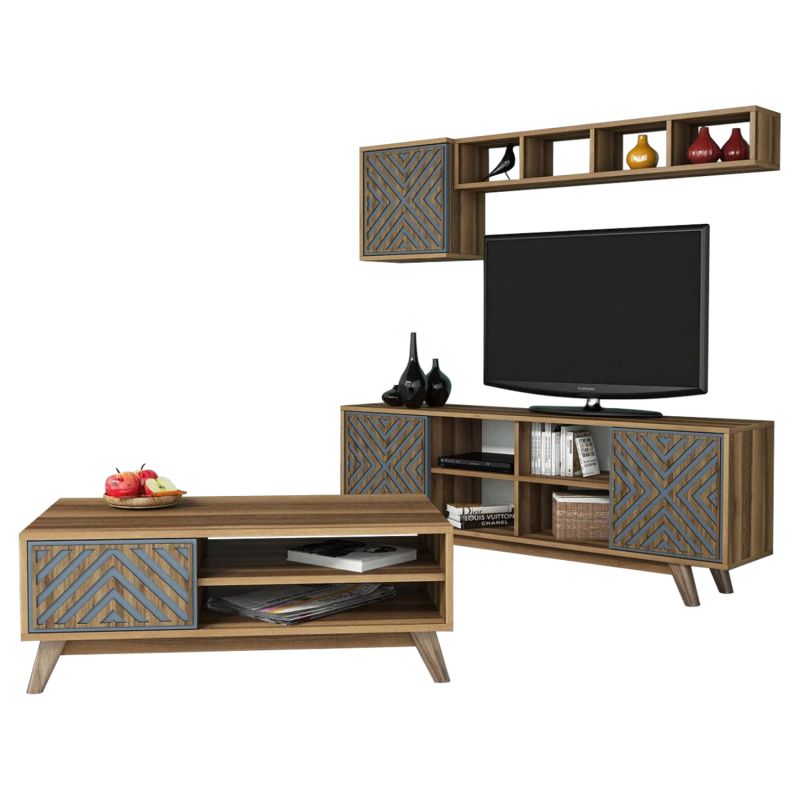 LIVING ROOM COMPOSITION HM11853.02 2PCS MELAMINE IN WALNUT-BLUE