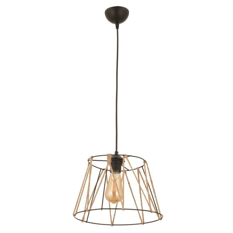 Φωτιστικό οροφής, σε μαύρη απόχρωση με σχοινί σε μπεζ χρώμα.