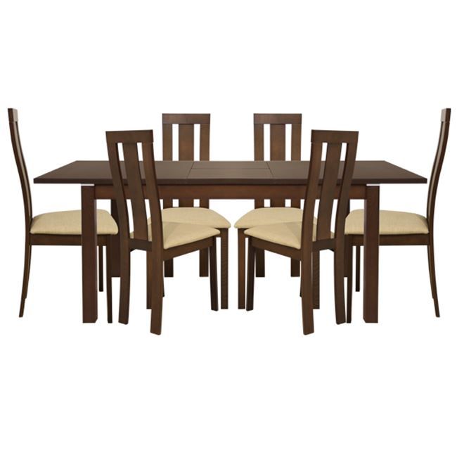 Set Dining table 7 pieces Opening & chair Walnut color HM10090