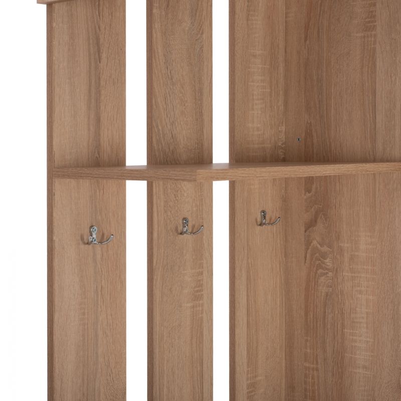 Entrance furniture with sliding wardrobe, hanger, shelves and a mirror.
