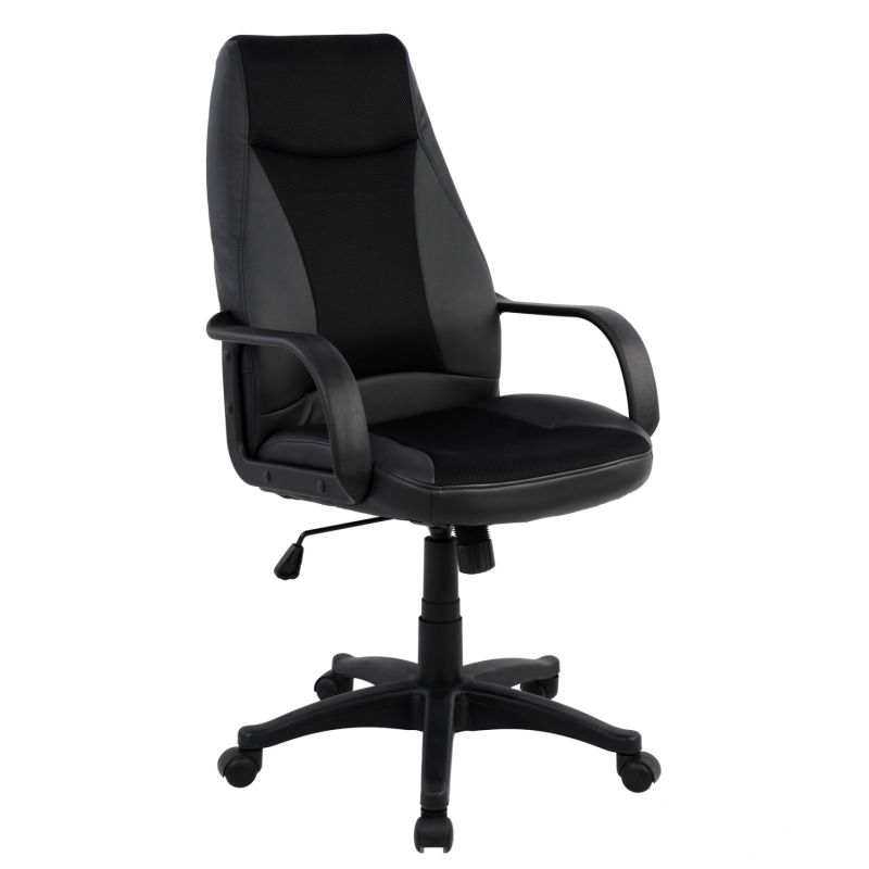 GAMING CHAIR HM1001.01 “SIVIR”, BLACK PU LEATHER AND BLACK MESH, FLAT ARMRESTS WITH NORMAL SLOPE