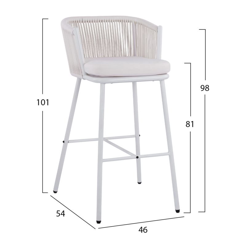Stool with metallic frame and rope white HM5714.03 46x54x101 cm