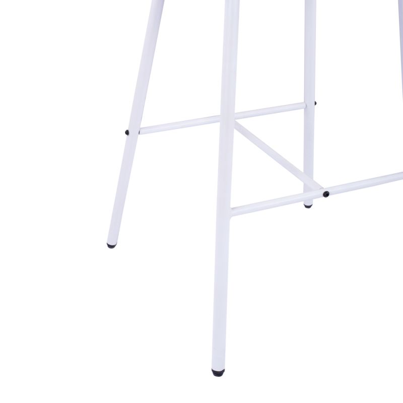 The stool is made of white metal.