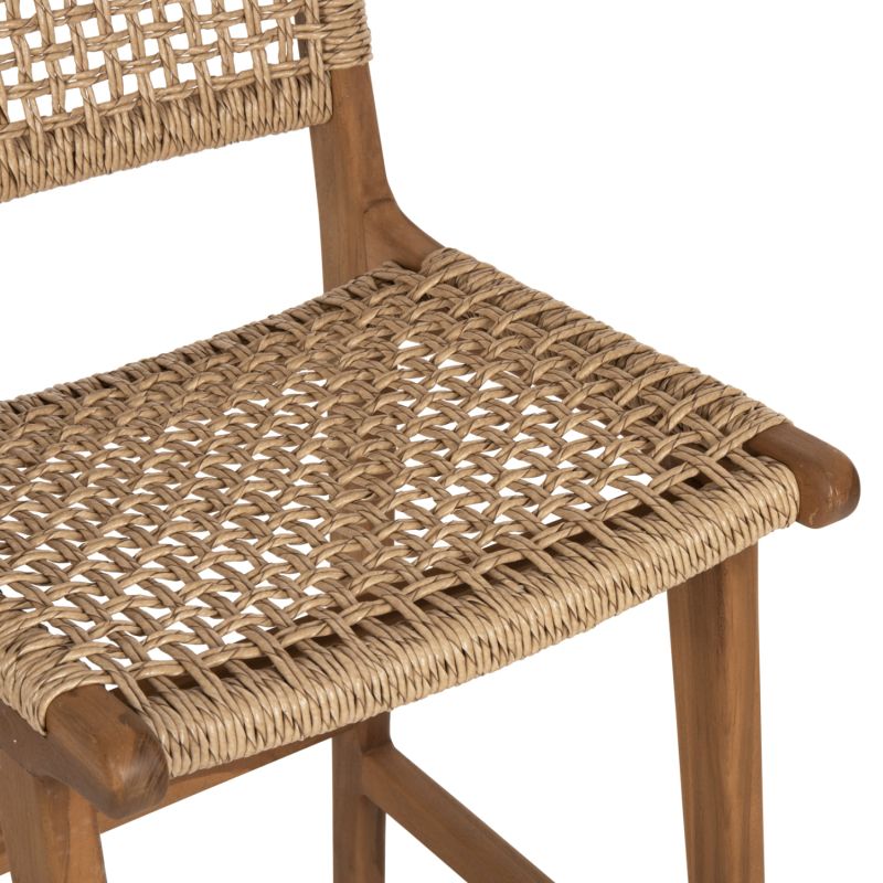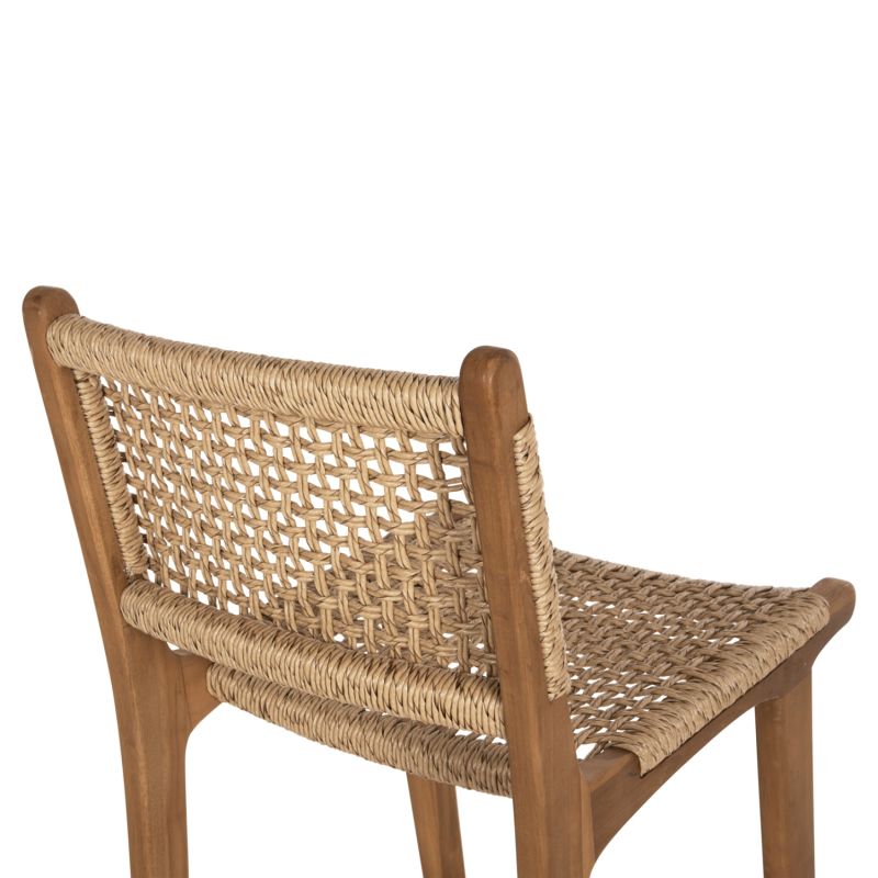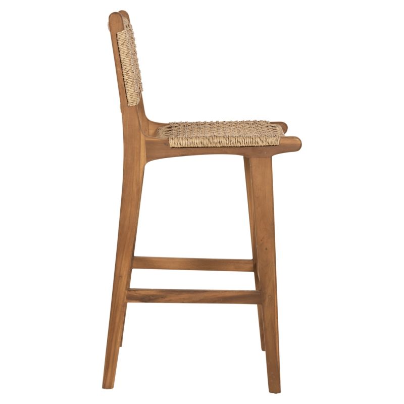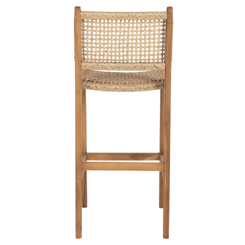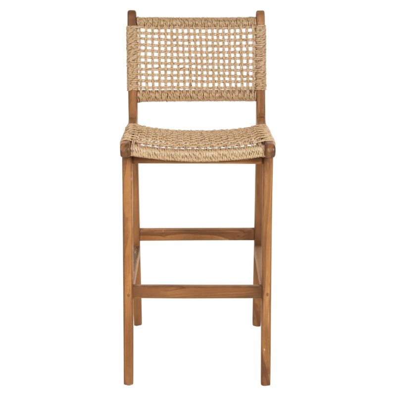 BAR STOOL WITH BACKREST NESHA HM9788 TEAK WOOD IN NATURAL-BEIGE ROPE 45x57x110Hcm.