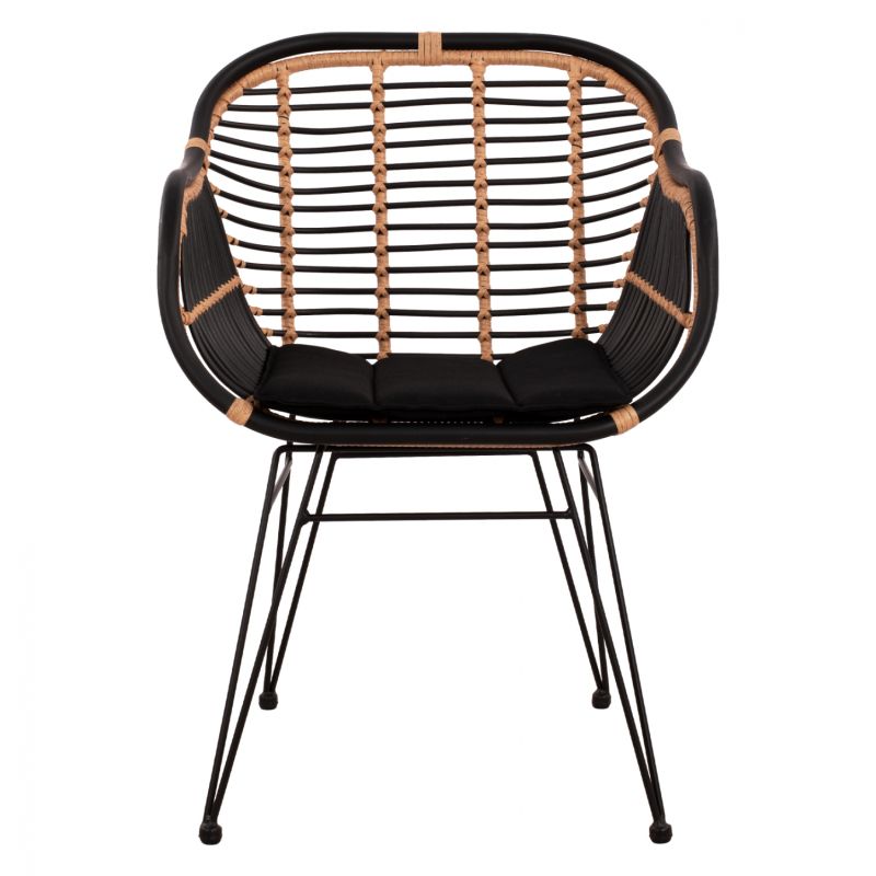 Metallic Armchair Allegra with pillows HM5663 with wicker Beige & Black color 58x60x82cm