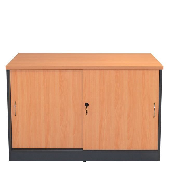 Professional office cabinet in oak color sliding doors and lock.