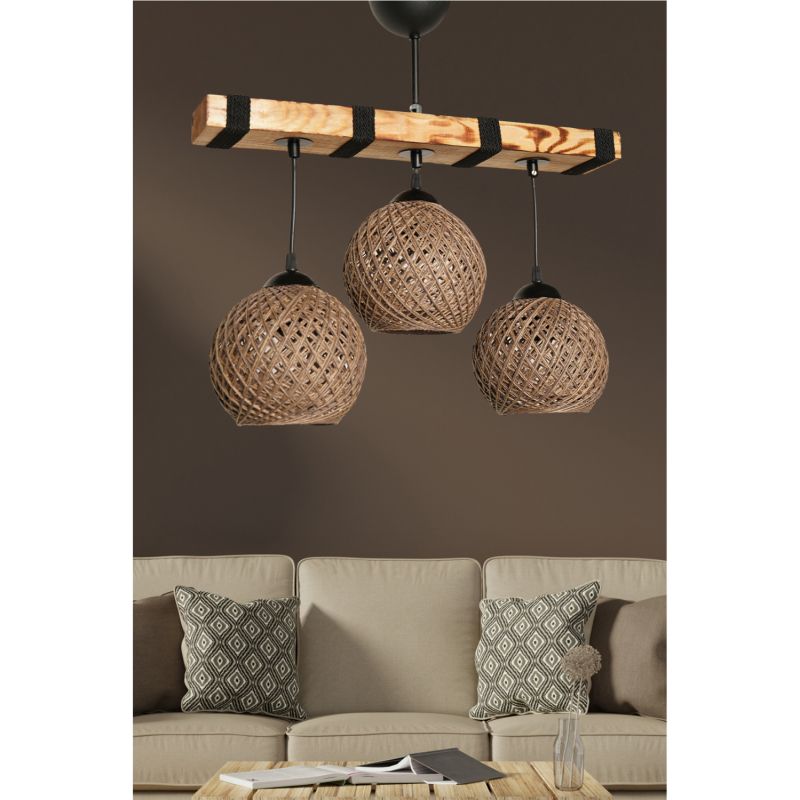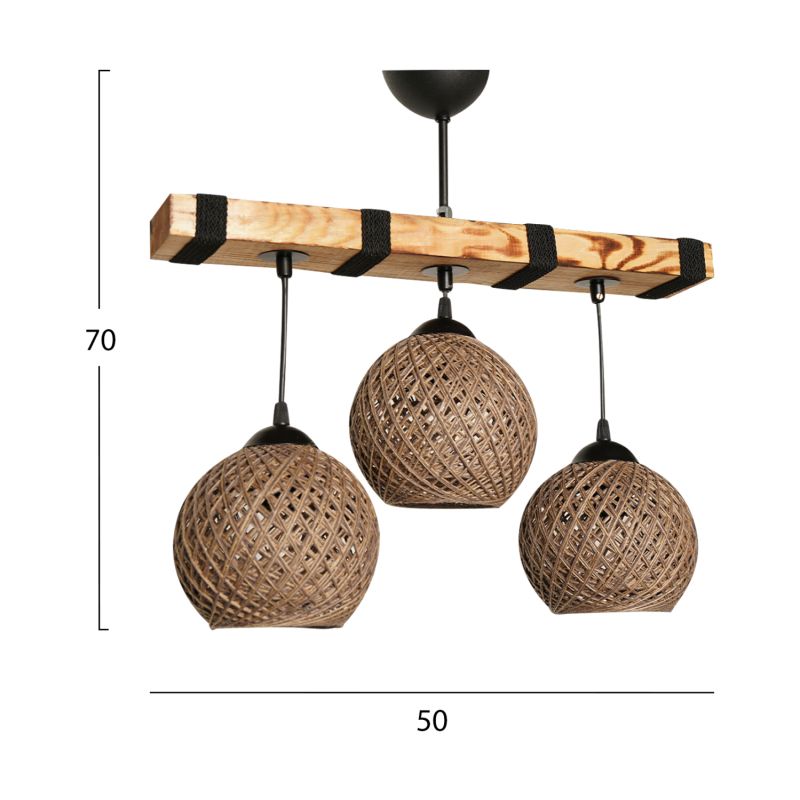 Φωτιστικό οροφής, 3φωτο, σε μπεζ απόχρωση και φυσικό ξύλο.