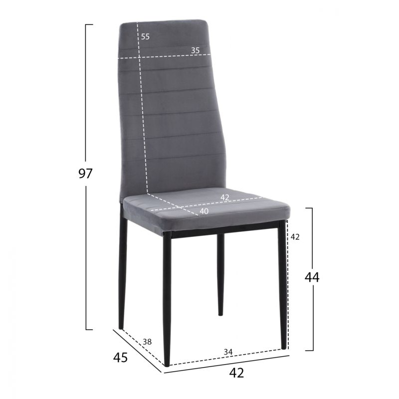 METAL CHAIR HM0037.31 GRAY VELVET WITH METAL FRAME K/D