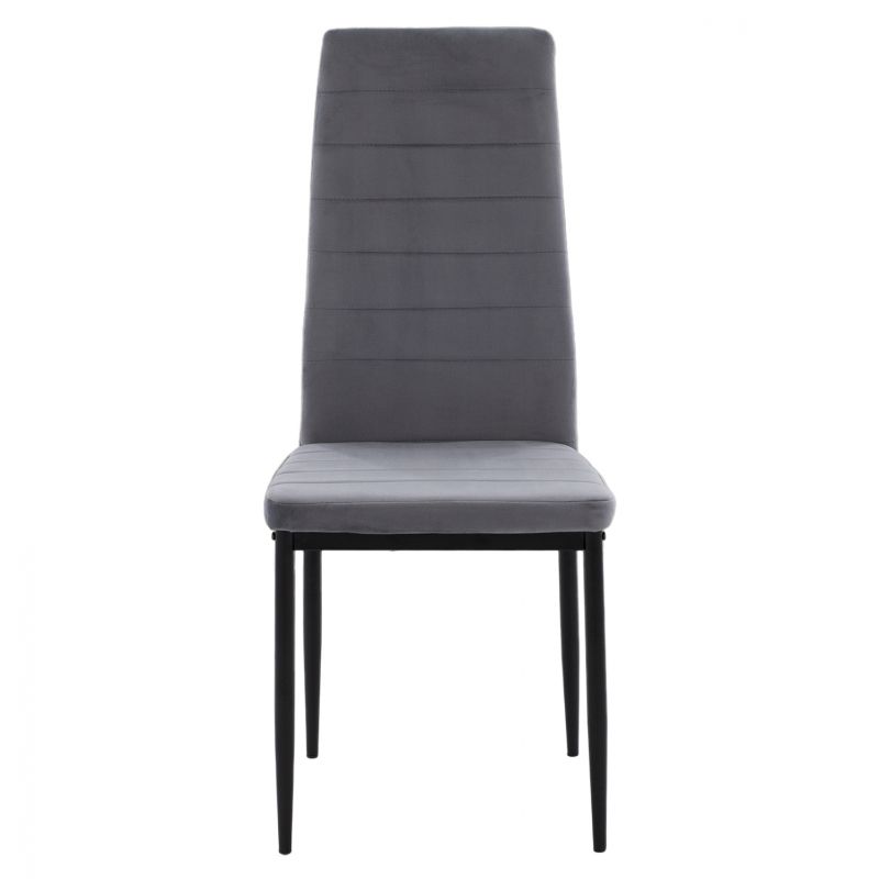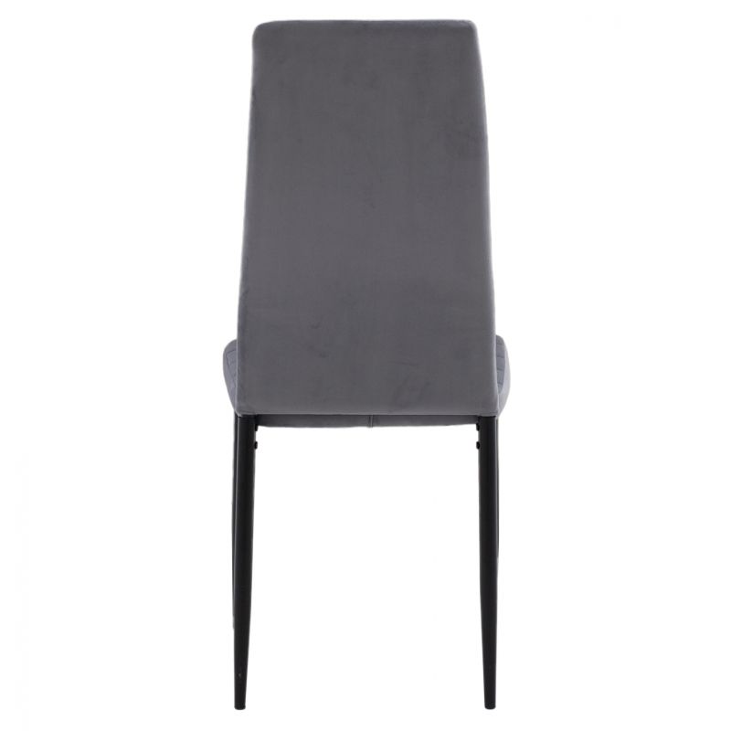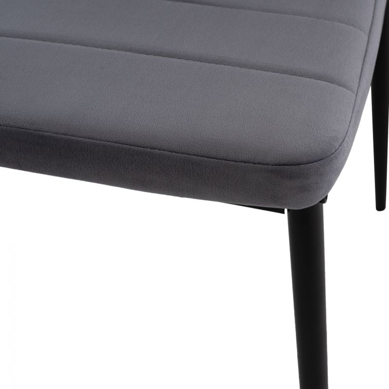 Kitchen chair from metal frame K/D in black shade and velvet upholstery in gray color.