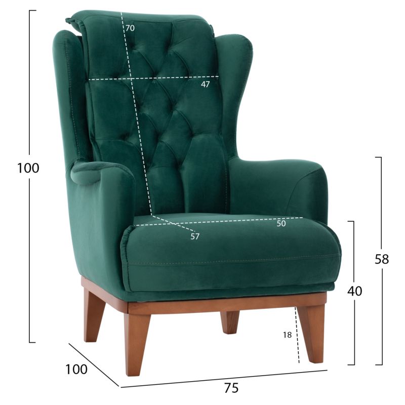 HM9313.13 BENNINGTON cypress green velvet armchair, 75x100x100cm