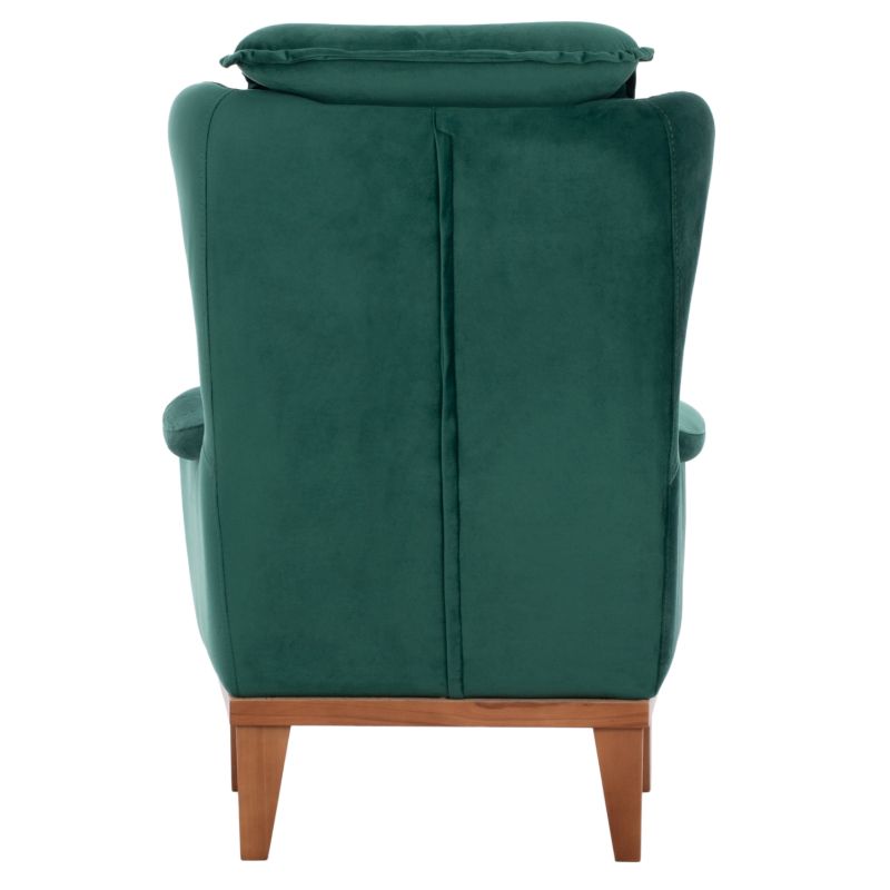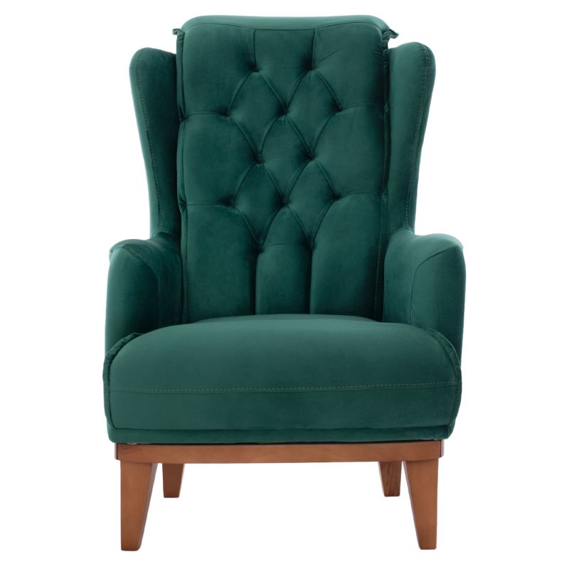 We present the BENNINGTON Bergere armchair, in CYPRESS GREEN color with wooden legs in a natural shade. The lining of the back has been made with a quilting technique that gives a special beauty to the bergere in combination, of course, with the velvet that is the fabric of the lining.