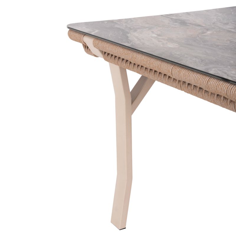 OUTDOOR DINING SET 7PCS DRIMM HM6119.01 ALUMINUM IN BEIGE-HPL GREY MARBLE-CAPUCCINO CUSHIONS AND ROPE