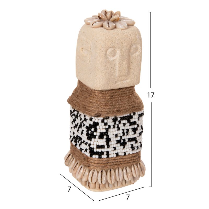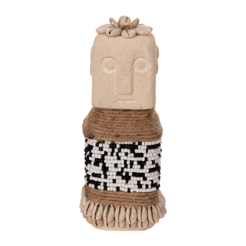 TABLE STATUETTE SUMBA HM4309 MADE OF WHITE PARAS STONE-BEADS-SEAGRASS ROPE 7x7x17Hcm.
