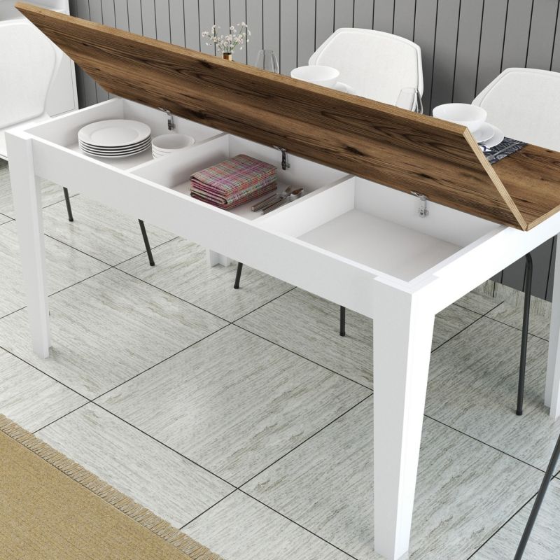 DINING TABLE STANDARD HM9507.07 MELAMINE WHITE-WALNUT WITH STORAGE SPACE 145x88x75Hcm.