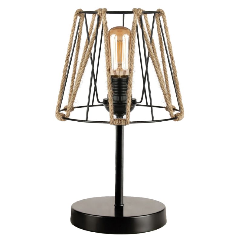 DECORATIVE TABLE LAMP HM7618.01 BLACK BASE, BLACK MESH CAP WITH ROPE