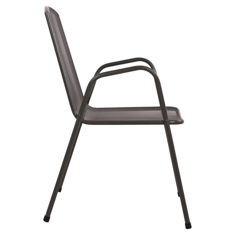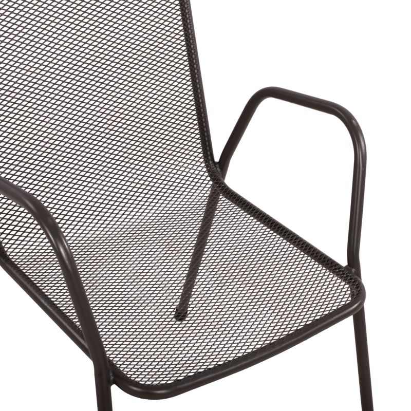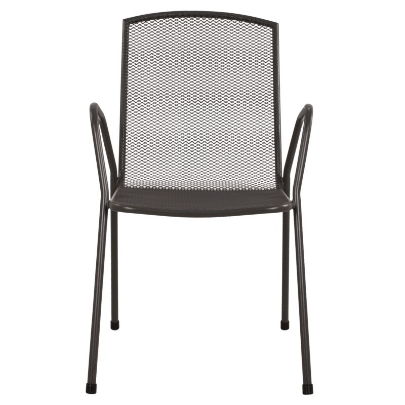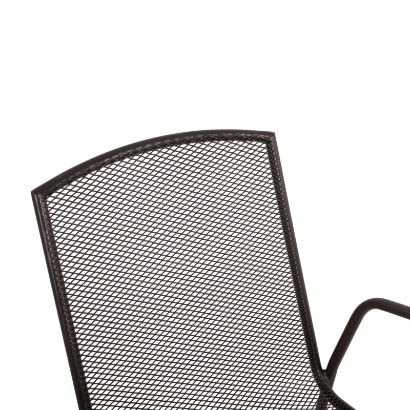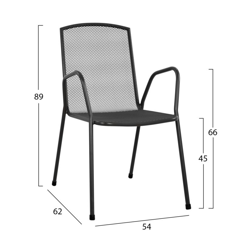 Metallic armchair for outdoor space. The base and the seat from the chair is from metal.