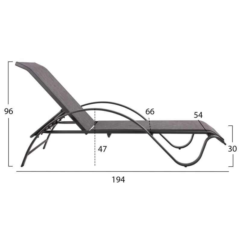 Sunbed Aluminum Grey with textline grey HM5133.01 194x54-66x30 cm.