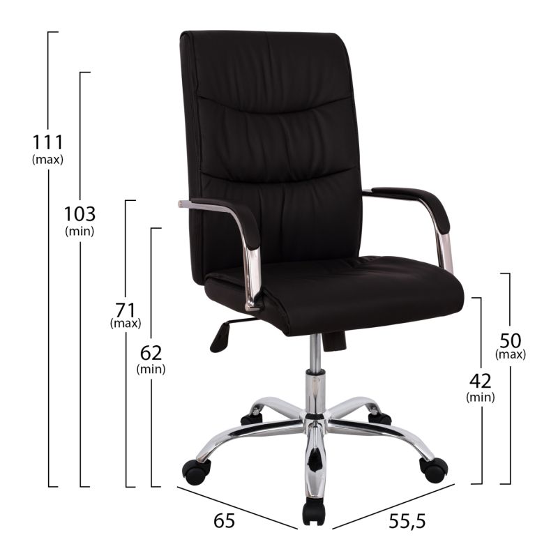 The JACOB chair is really beautiful. Its high and anatomical backrest supports your entire torso, while the foam materials of the lining, both on the entire backrest and on the seat, allow for long hours of use especially in front of the computer. It is also available in two basic colors of synthetic leather which means you can match it with several different color decorative patterns in your space. The inox polished base and suspension with height adjustment, add a sense of luxury that is always welcome in any space, while the chair's mechanism with its elegant metal lever, offers locking recline adjustment for comfortable and enjoyable long hours of use! Ideal for business spaces mainly, but also for your home office if you spend several hours on the computer and want a beautiful and rich office chair.
