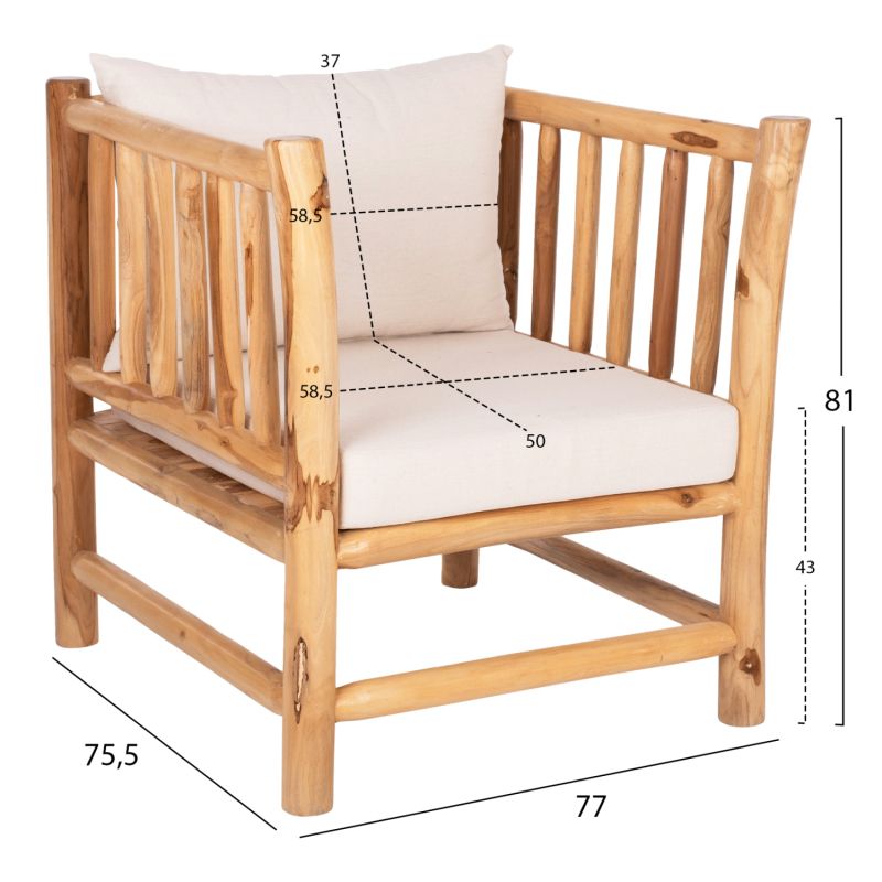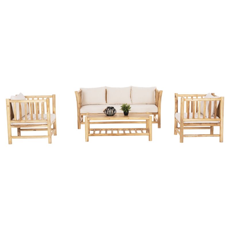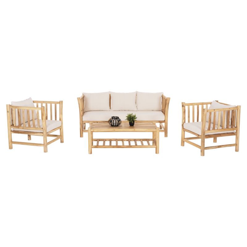OUTDOOR LOUNGE SET 4PCS EDDARD HM9340 SOLID TEAK NATURAL-WHITE