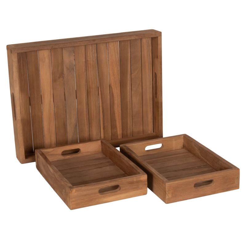 TREY SET 3PCS HM7894 TEAK WOOD IN NATURAL COLOR 39x29x7cm.