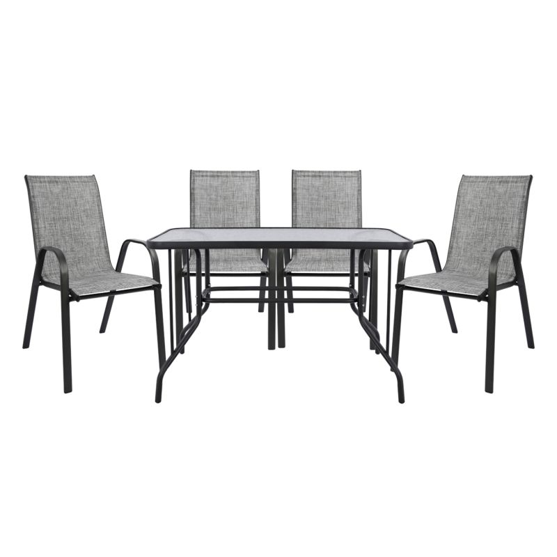 DINING SET 5PCS HM5193.01-METALLIC IN GREY-4 CHAIRS & TABLE 110X60cm.