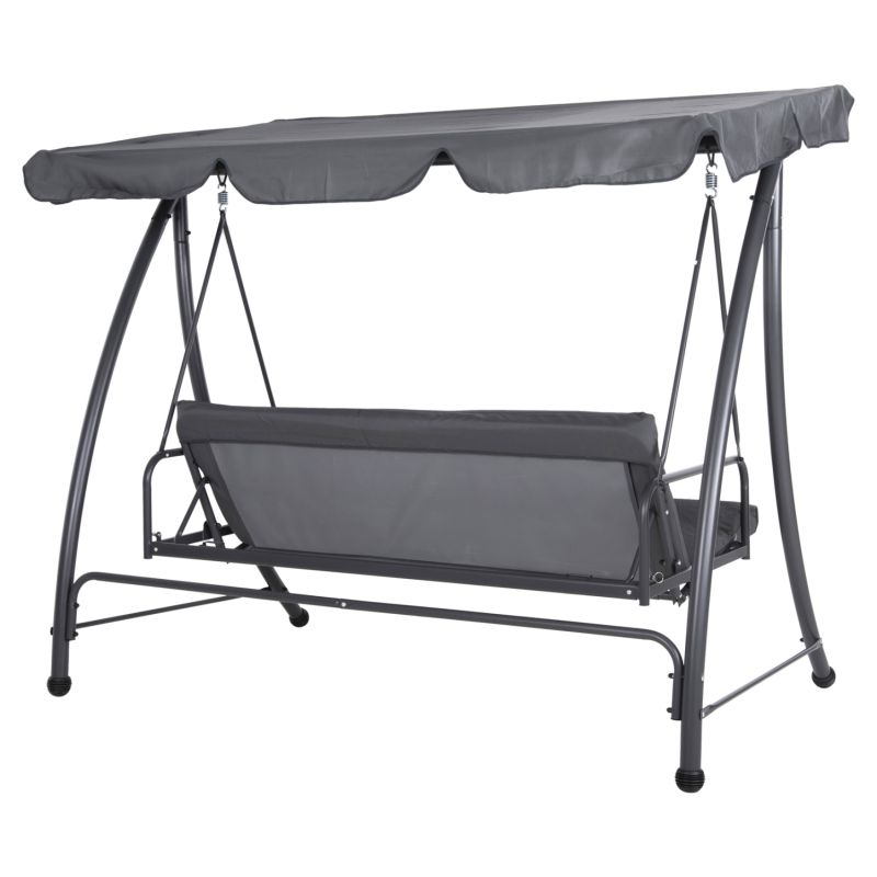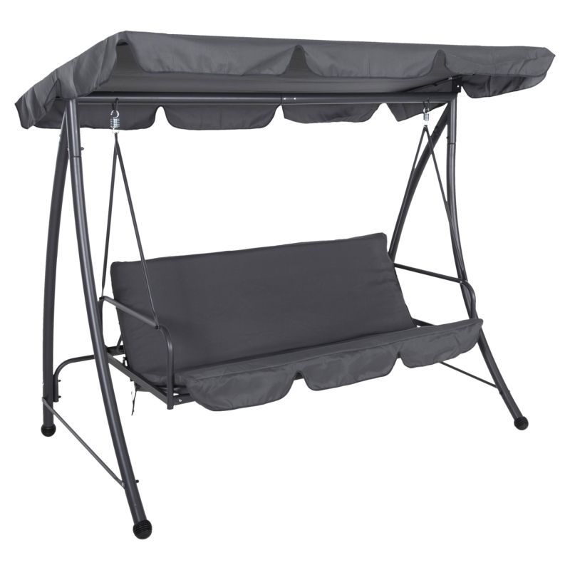 PORCH SWINGER-BED 3-SEATER WITH SUNSHIELD LIKID HM5980.01 METAL FRAME&FABRIC IN GREY 200x120x164Hcm.