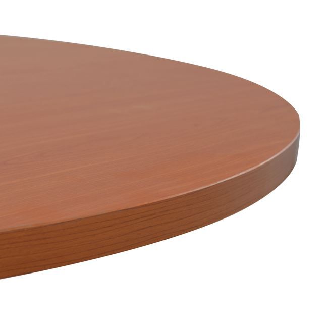Professional conference office with round desktop, constructed from high grade melamine in cherry color and metal base in grey color.