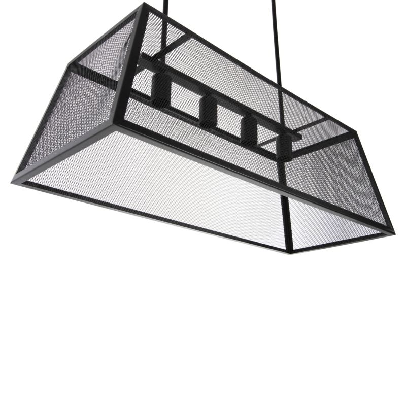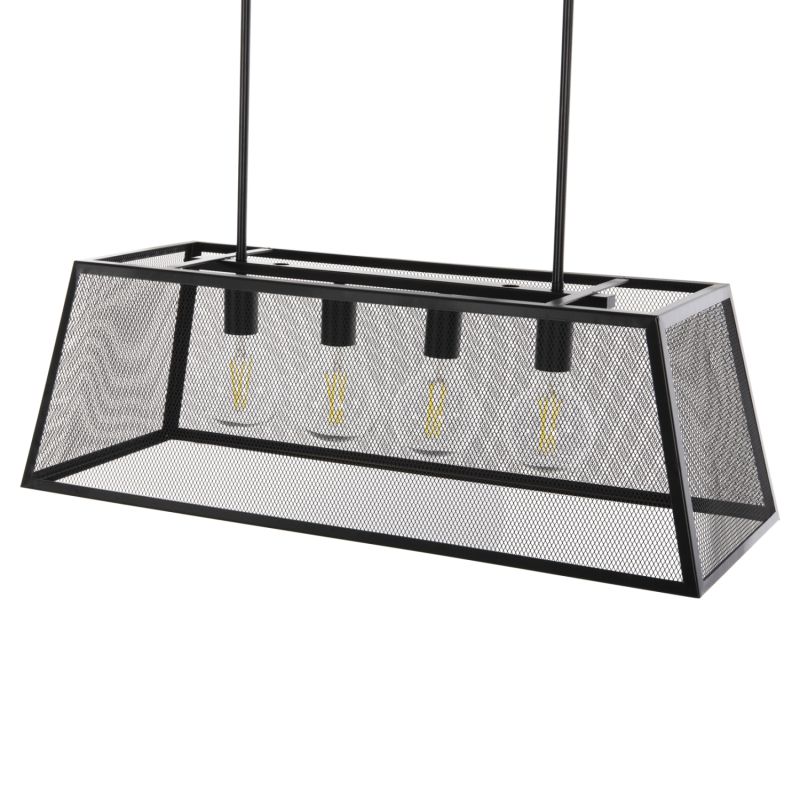 Discover our new hanging 4-light ceiling lamp and complete your decoration. It is a lamp in which the bulbs are located in a trapezoidal metal cage. You will definitely give something different to the image of your room.