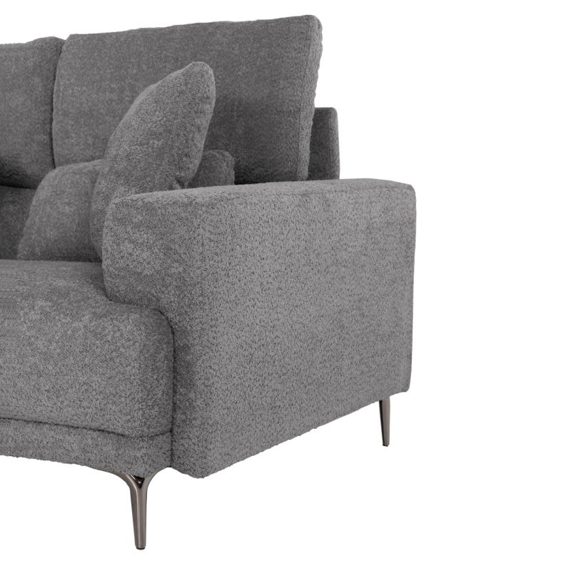 SYMMET is a wonderful large corner sofa consisting of 3 pieces. The two equal and similar symmetrical sides, and a corner connecting them with vertical panel hangers. The lining has been made with quality textured fabric in GRAY color, while the legs are high and metallic in glossy ANRTHRACITE color. In terms of design, the sofa has wide and comfortable arms while the backrest on both sides is short but has folding parts that serve as additional supports for the back cushions. It has 4 large back cushions and 9 smaller ones, which elevates the comfort it offers. The seat has medium hardness foam fillings combined with pocket springs, also offering unparalleled comfort.