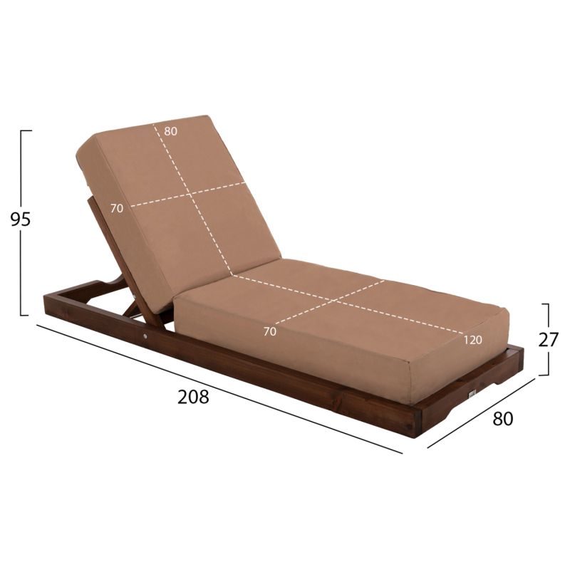 BEACH LOUNGER LOW IKARIA HM10622.04 PINE WOOD IN WALNUT COLOR-MOCHA TEXTILENE-CUSHION 20cm THICK