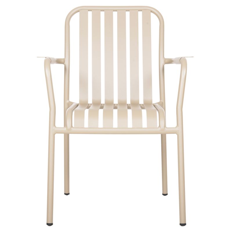 The RACHEL armchair is entirely made of aluminum in CHAMPAGNE color. In terms of design, it is simple with beautiful curves and specially widened arms for greater comfort, while the fact that it is STACKABLE makes it particularly practical since you can store it in the smallest possible space.