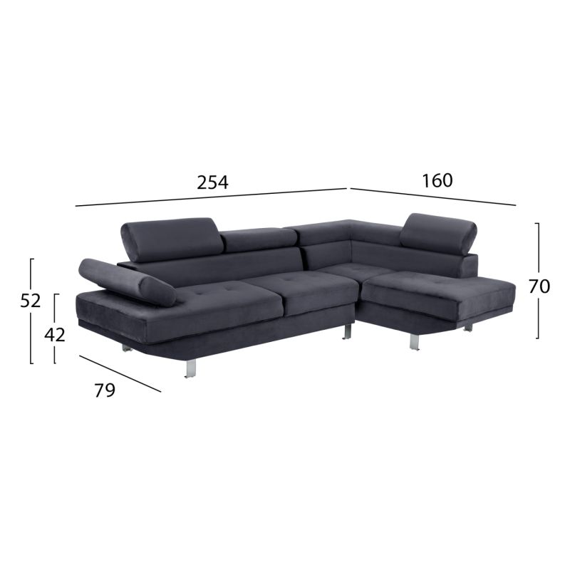 Corner Sofa FAITH Grey velvet HM3156.01 254x79-160x70-84 cm