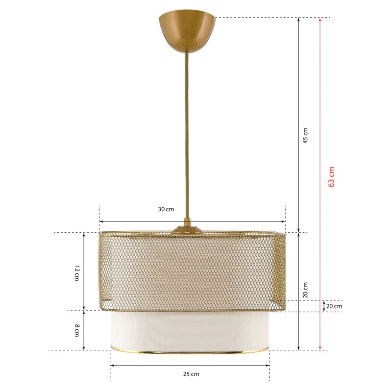 CEILING PENDANT HM7660.02 METAL-FABRIC GOLD-WHITE 30x20(65)Hcm.