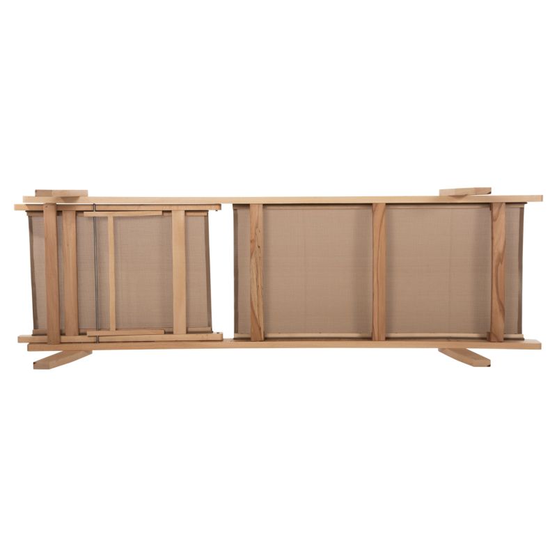 The entire deckchair is made of beech wood. Beech is a hard, strong, elastic, and heavy wood with tiny pores. This wood is elegant and has a reddish-brown color. It is mainly used to make furniture.