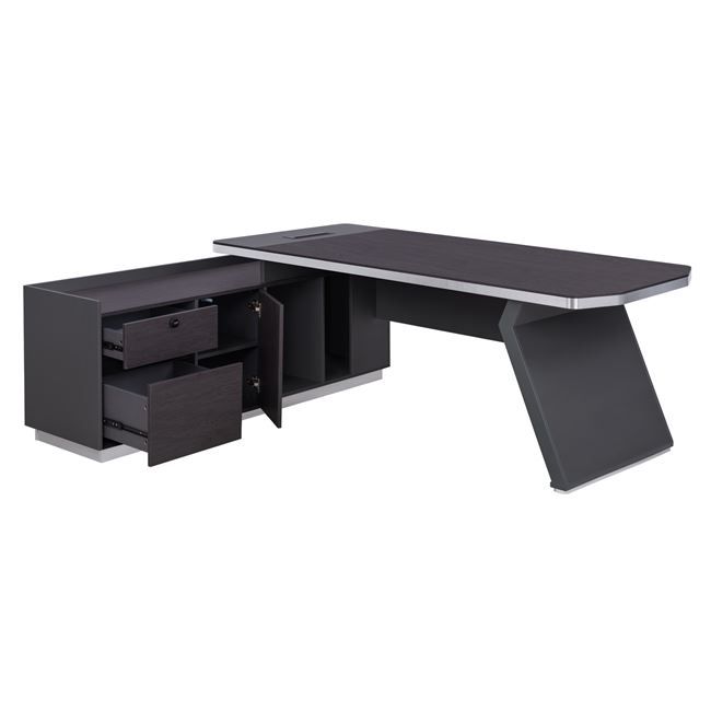 Left-angle professional desk, made of high quality melamine, in grey and wenge color.