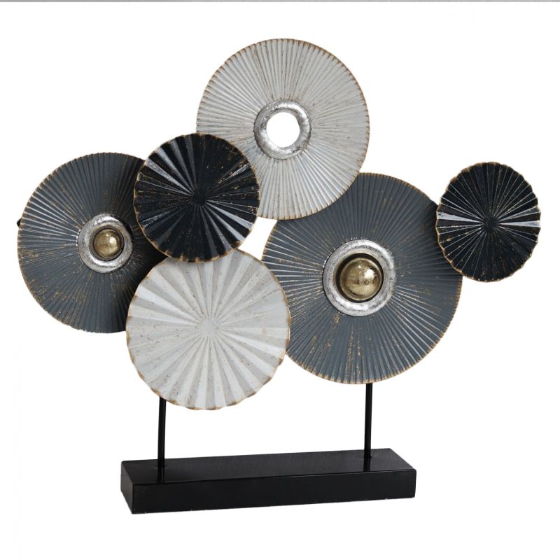 Metallic table decoration in white and gray with details of silver and gold touches and base in black.