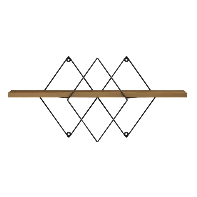 The CHANTRIA wall shelves combine modern design with practicality. This is a shelf in OAK color mounted on BLACK metal rods in diamond shape. Ideal for placing decorations but also for anything else you want to place.