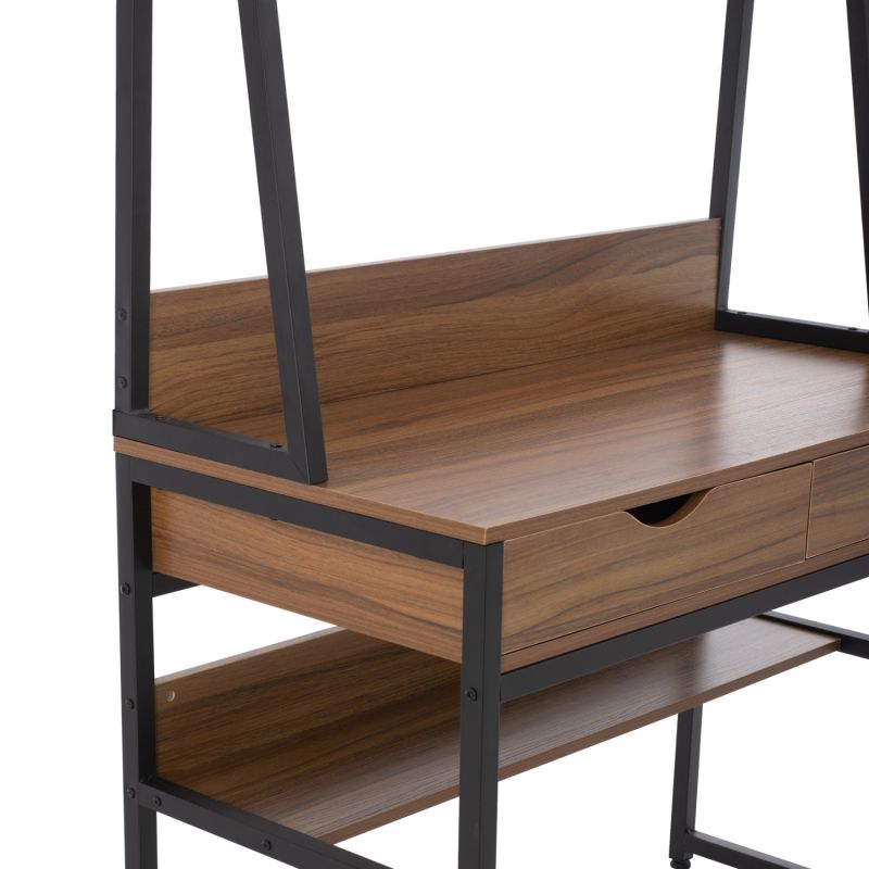 DESK WITH BOOKCASE TANAYA HM2390.12 MELAMINE IN WALNUT & METAL BLACK FRAME 100x48x139H cm.