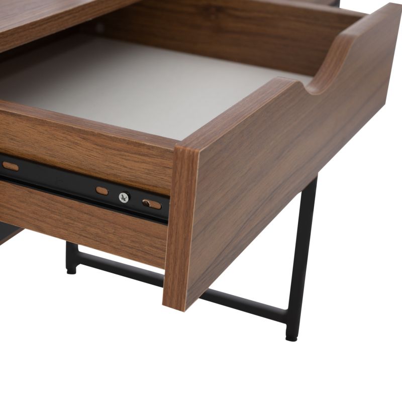 The desk HΜ2390.12 is a practical and beautiful proposition both for your home office and for your business space. The BLACK frame with the WALNUT color on the surfaces is a combination that really makes the furniture stand out in the space. This desk has two drawers in WALNUT color and an open shelf under the desktop. However, the most important part of this desk is that it has a small bookcase placed with an additional frame above the main surface. This bookcase is essentially a shelf divided into 3 spaces, and it lends flexibility and ease to everyday use.