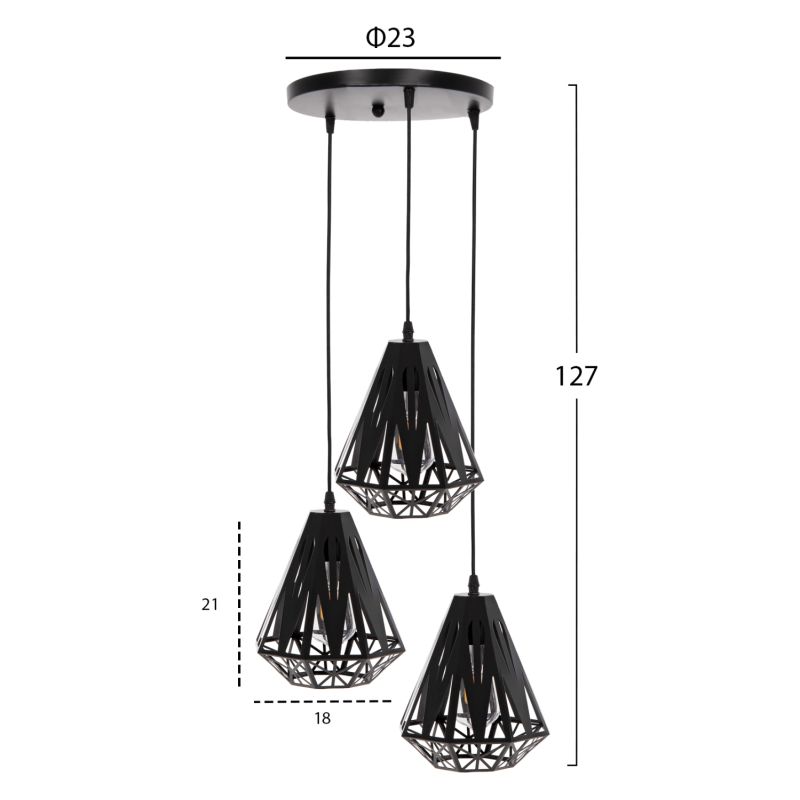 CEILING PENDANT LAMP HM4083 3 "LANTERNS" BLACK METAL Φ23x127Hcm.