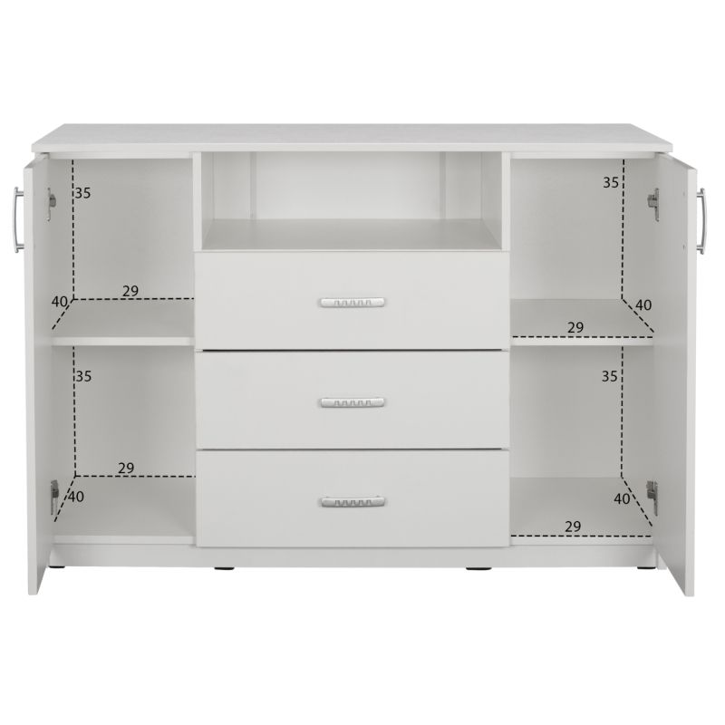Μπουφές σε λευκή απόχρωση που θα ολοκληρώσει την αισθητική του χώρου σου, προσφέροντας σου παράλληλα έξτρα χώρους προβολής και αποθήκευσης αντικειμένων.